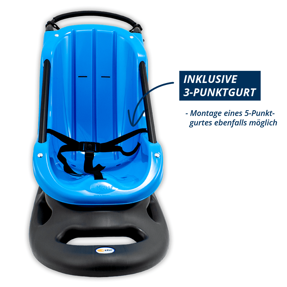 Der ergonomisch geformte Schalensitz aus robustem, kälte- und UV-beständigem Kunststoff bietet optimalen Halt und Schutz. Dank des 3-Punkt-Sicherheitsgurts (optional auch 5-Punkt-Gurt montierbar) sitzt Ihr Kind sicher und komfortabel, selbst auf unebenen Schneestrecken. Die hohe Rückenlehne und seitliche Armstützen sorgen zusätzlich für Stabilität.